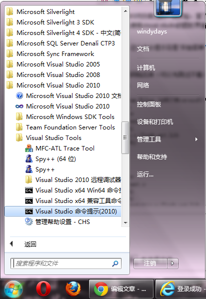 新手注意:这个命令提示符是"开始菜单"–»“Microsoft Visual studio”–»“Visual Tools” 那里的提示符,其实就是设置过一些环境变量的cmd。